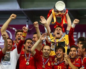 . Centro del campo: Busquets correcto, sin grandes alardes, indiscutible para el seleccionador, es básico. Alonso flojo, candidato a abandonar el campo en alguna ocasión y sin embargo parece intocable, no está en su mejor versión, ha llegado medio fundido. Xavi parecido a Alonso, no está fresco, pero aún así es pieza indispensable por su capacidad para asociarse con los jugadores más adelantados. Silva e Iniesta: los mejores de largo, si tenemos opciones de ganar el torneo es por estos dos pequeños, que han llegado bien de forma y lo están demostrando; en cuanto se asocian dan la sensación de que llevan toda la vida jugando juntos. Cesc ha participado a buen nivel en los tres partidos. Hasta el momento, papel intrascendente de Cazorla y Mata.