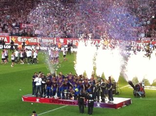 Para que no quede ninguna duda sobre los cauces deportivos sobre los que discurrió esta gran final diremos que antes del partido, por la inmediaciones del estadio Vicente Calderón, ambas aficiones compartieron cánticos y cervezas es un clima festivo; durante el partido, cada uno animó a su equipo (había más bilbaínos que culés); y al finalizar los leones se quedaron a aplaudir deportivamente al campeón, mientras que fue emocionante escuchar a toda la grada blaugrana gritando “Athletic, Athetic…”.